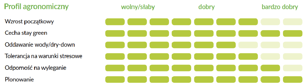 Łączy bardzo wysoką energetyczność kiszonki (NEL 6,7 MJ/kg s.m.) z wysoką tolerancją na suszę i opóźnione siewy.