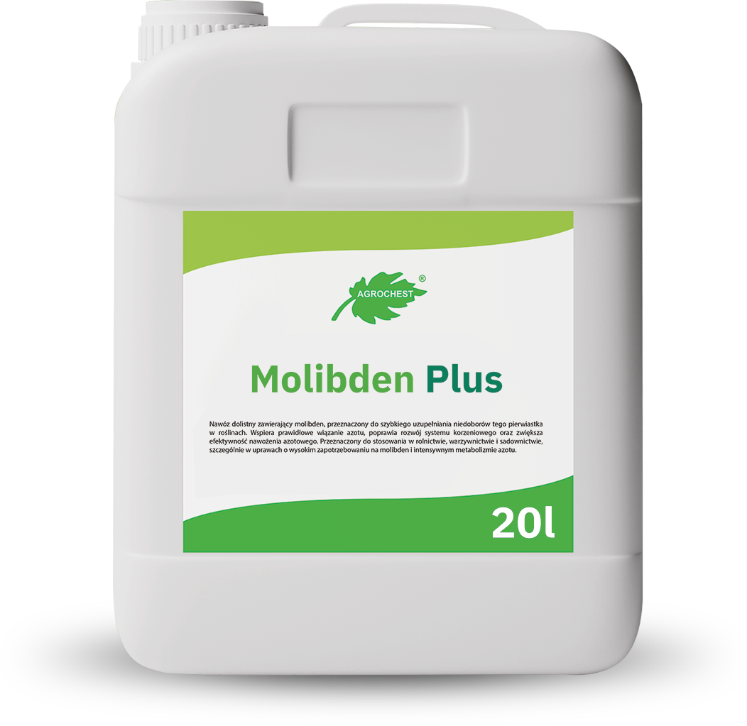Nawóz dolistny zawierający molibden, przeznaczony do szybkiego uzupełniania niedoborów tego pierwiastka w roślinach. Wspiera prawidłowe