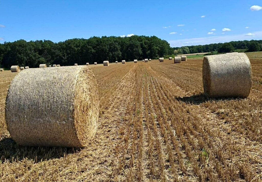 Zdjęcia przedstawiają bele słomy owinięte siatką Netzwerk PREMIUM